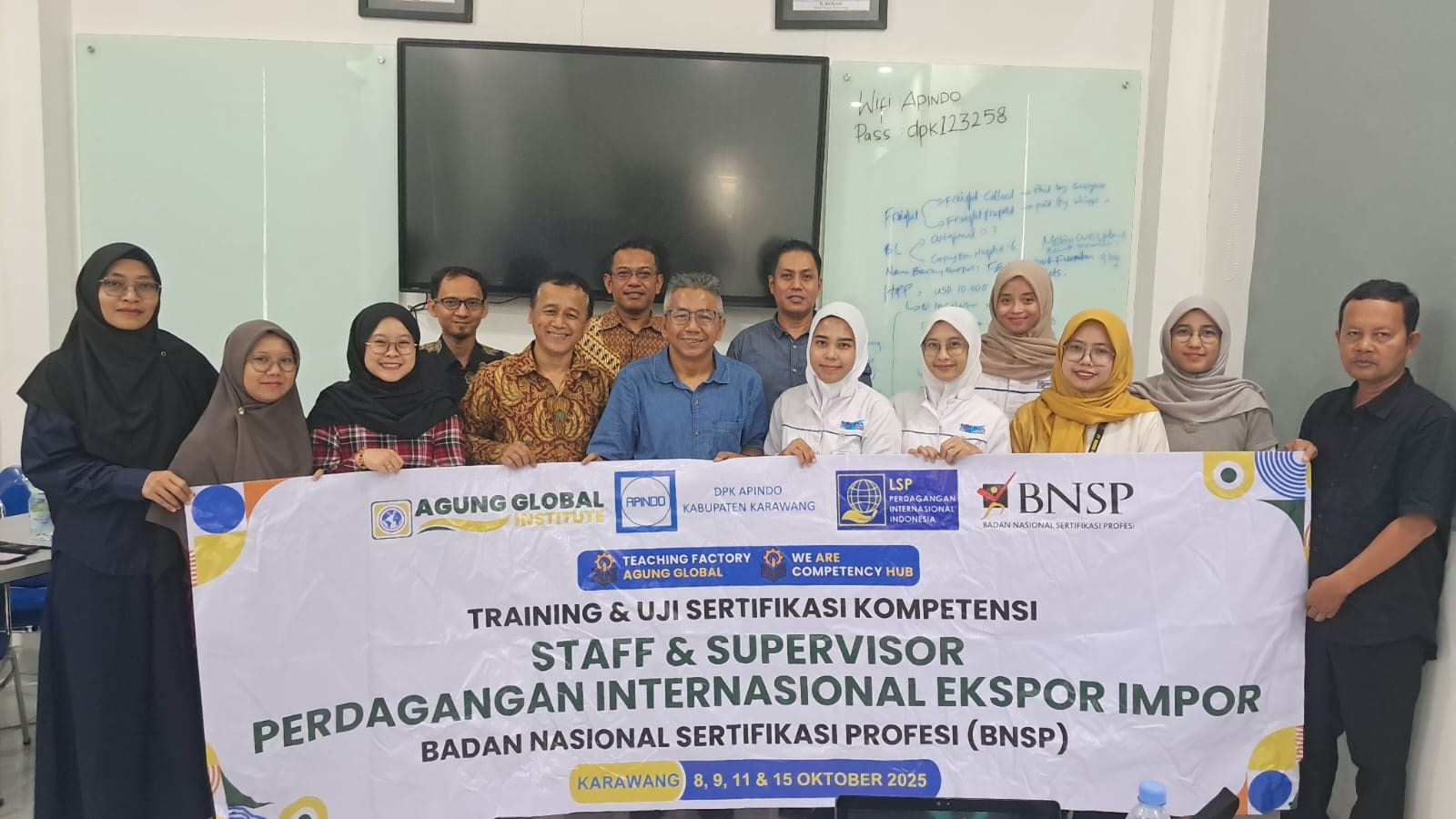 Untuk meningkatkan kompetensi SDM bidang Perdagangan Internasional karyawan aperusahaan-Perusahaan di kawasan industri kabupaten karawang maka, telah dilakukan kerjasama antara PT LSP Perdagangan Internasional indonesia yang telah mendapatkan lisensi BNSP dengan Asosiasi Pengusaha Indonesia (APINDO) KABUPATEN Karawang. Uji Kompetensi ini terselenggara berkat kerjasama dengan lembaga pelatihan Agung Global. Uji Kompetensi dilaksanakan pada hari Rabu tanggal 15 Oktober 2025. Bertempat di Kantor APINDO kabupaten Karawang. Kompetensi ini dibutuhkan terutama bagi pegawai yang menangani kegiatan perdagangan ekspor impor.